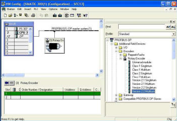 導入GSD文件之后,旋轉編碼器將出現在硬件目錄中,路徑為"Profibus-DP"-"additional field devices"-"Encoders"-"Rotaryencoders"