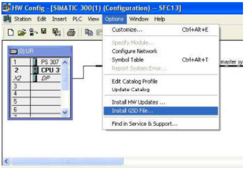 導入GSD文件對于第一-次使用,必須安裝GSD文件("PFDG5046.gsd") ,使得項目工具的硬件目錄接受編碼器。在硬件配置窗口"HW config"選擇"Install new GSD* ("PFDG5746.gsd")
