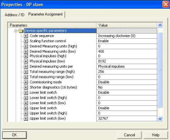 標識編碼器,在項目工具中,設置參數,雙擊安裝的從站。然后出現"DP slave properties"對話框。在這里您可以修改地址。設置參數,選擇"Parameter assignment"屬性。.