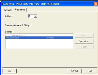 Profibus網絡的配置之后,使用菜單"Insert'"Insert object",絕對值編碼器可以在硬件目錄中選擇,插入到Profibus網絡中。將旋轉編碼器連到總線上也可以使用拖拉或者雙擊編碼器模塊。當設備插入之后,必須鍵入從站地址。此處地址必 須與總線底座設置地址一致。