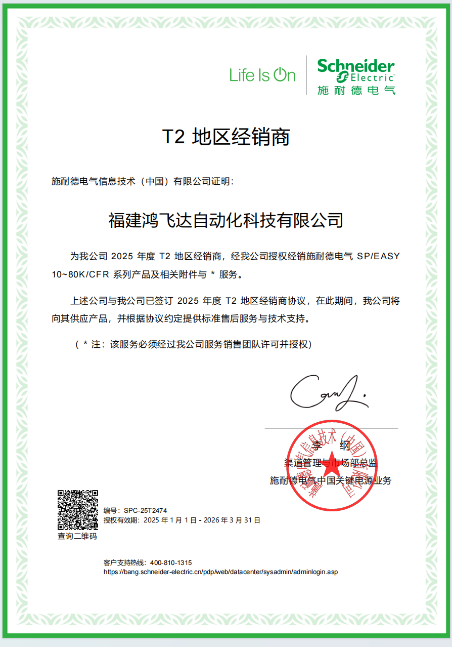 福建鴻飛達自動化科技有限公司憑借多年的工業服務經驗,攜施耐德電氣,共同為客戶提供更專業、更可靠的UPS電源保障。未來我們也會圍繞客戶需求,提升技術實力,為企業智能制造升級保駕護航。